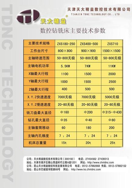 數(shù)控鉆銑床參數(shù)ZXS180-250/ZXS400-500/ZXS710
